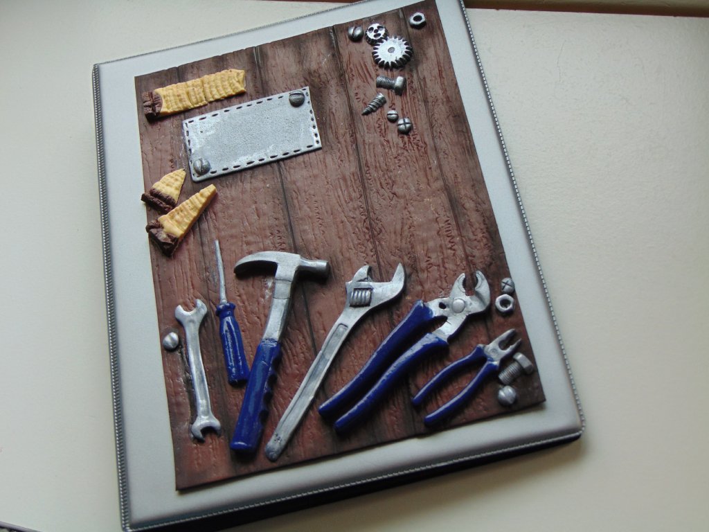 Desky kroužkové s motivem pro kutila .Velikost A5.V deskách je 100 linkovaných stran ,kroužková mechanika umožnuje přidat třeba průhledné desky ,vyměnit stránky za čisté ...k bloku patří i stejně ozdobená propiska a záložka.Obrázek je plastický,vymodelovaný z polymerové hmoty.Na stříbrný štítrek je možné doplnit jméno nebo monogram.