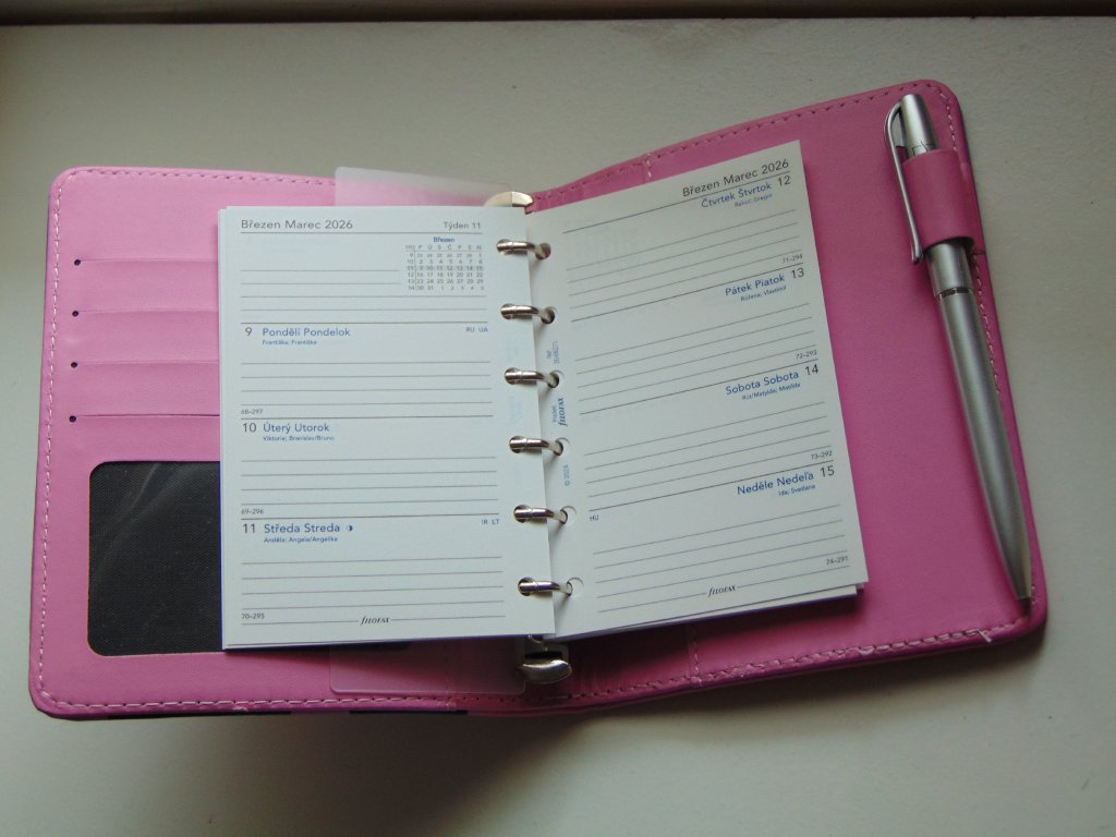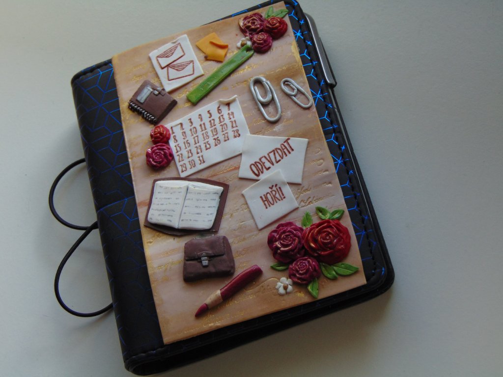 Velikost diáře s kroužkovou mechanikou je 128x156 mm .Ozdobené jsou obrázkem který je ručně vymodelovaný z polymerové hmoty. Uvnitř diáře je kalendárium na rok 2026,které se dá pak vyměnit za nové a diář tak používat po více let .Motiv prosím uvést do zprávy .K zápisníčku patří propiska ,záložka a pravítko .Uvnitř jsou ještě kapsičky na vizitky.