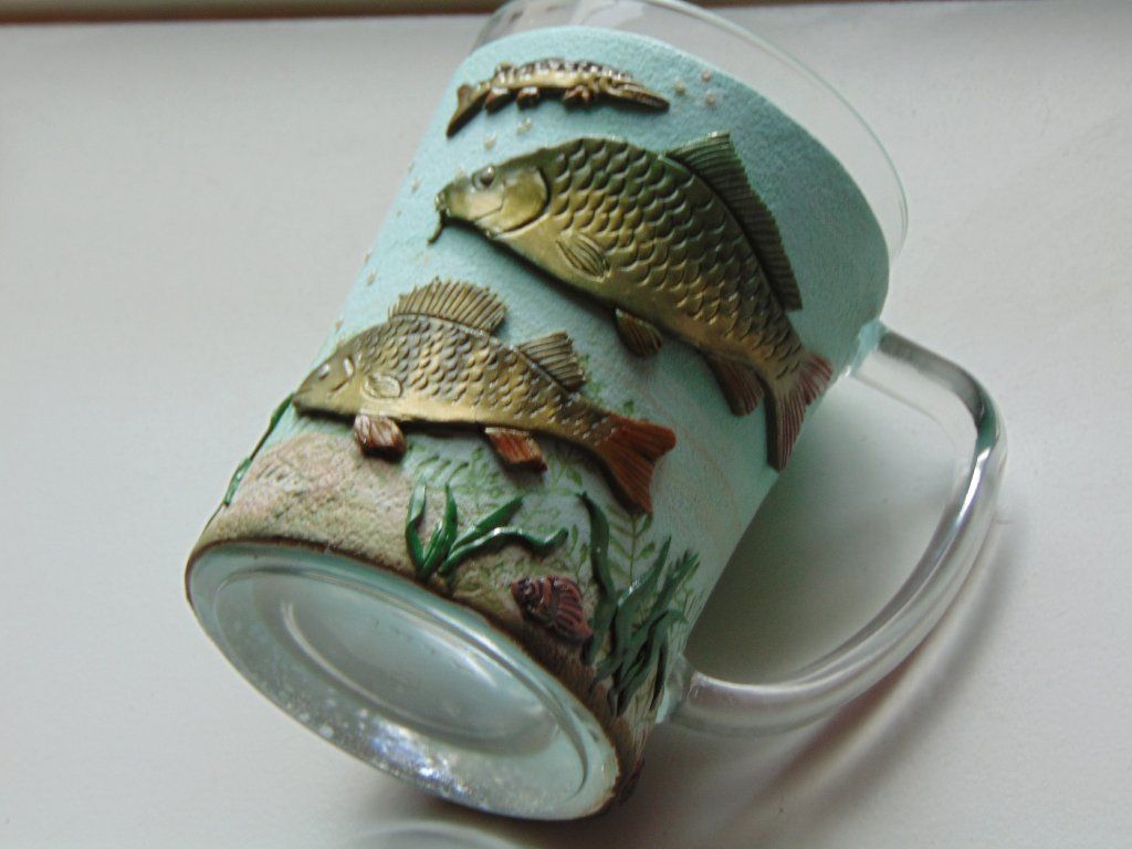 Ozdobené půllitry plastickým motivem který je ručně vymodelovaný z polymerové hmoty.Není vhodné umývání v myčce nádobí ,ale jen ruční mytí. .