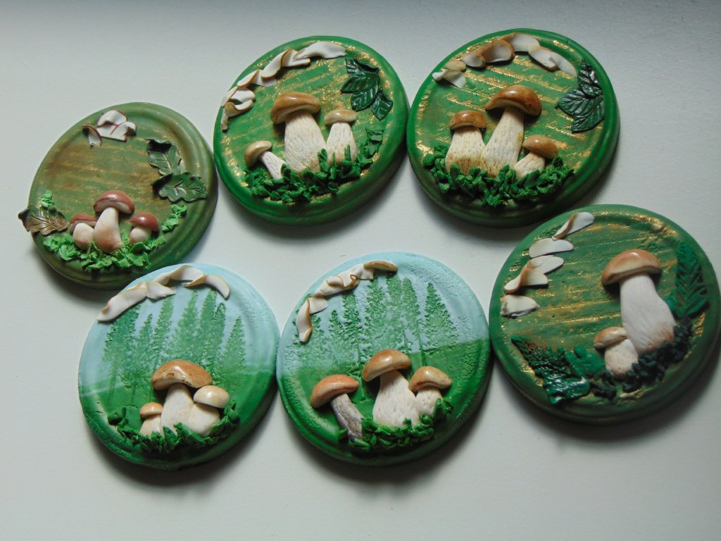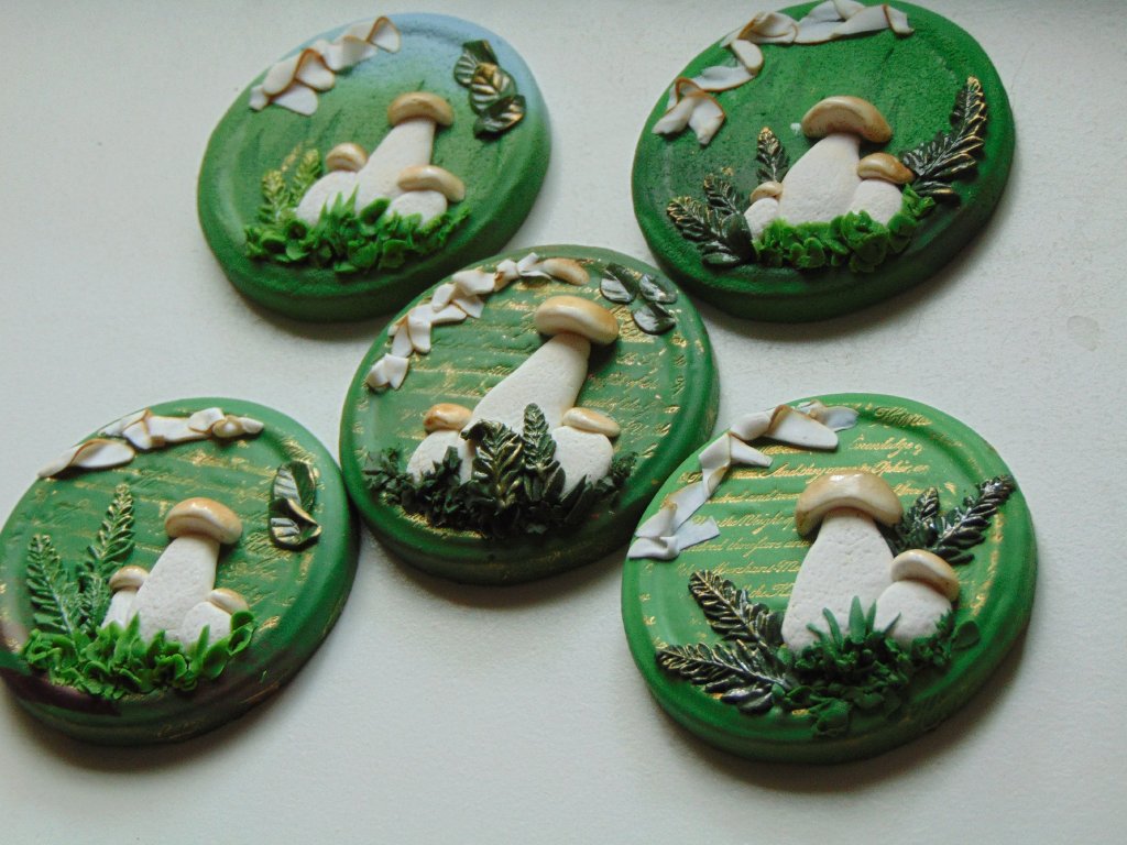 Ozdobené šroubovací víčko na sklenice se sušenými hříbky .Velikost je 82 mm.Při zájmu o konkrétní víčko prosím uvést do zprávy .